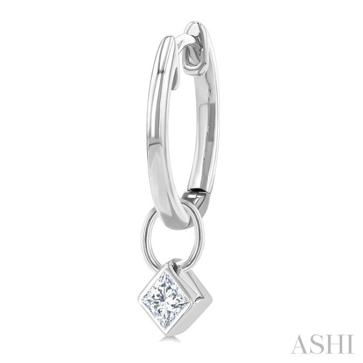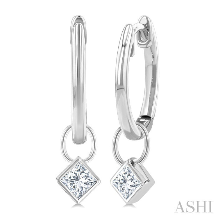 1/3 Ctw Bezel Set Princess Cut Diamond Huggie Earrings in 14K White Gold
