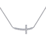Simple yet charming. This adjustable sideways curved cross necklace is set with Lafonn's signature Lassaire simulated diamonds in sterling silver bonded with platinum.
